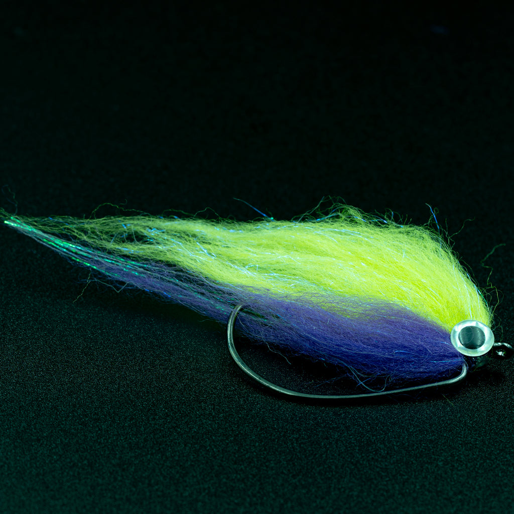 The Big Mama Baitfish is a hard-hitting, weedless beast designed to muscle through thick cover and lock lips with the baddest fish on the block. Built on a heavy-duty 3/0 hook and tied by Dirty Loaf, this one-of-a-kind fly is your no-nonsense solution for trophy redfish, largemouth, and smallmouth bass.