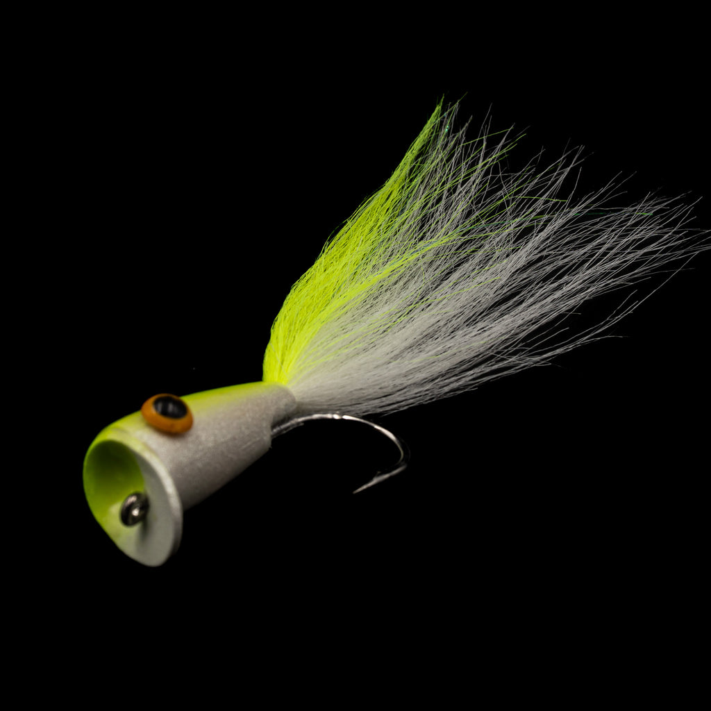 ✅ Sizes #1 and 3/0 – From skinny water missions to big-water blowups ✅ Tapered Foam Head – Pops, pushes, and glides like it knows what it's doing ✅ Synthetic & Bucktail Tail – Balanced action with just enough flare ✅ Saltwater-Ready – Redfish, tarpon, snook, jacks, and beyond ✅ Featherweight Profile – Casts far, lands soft, fished loud