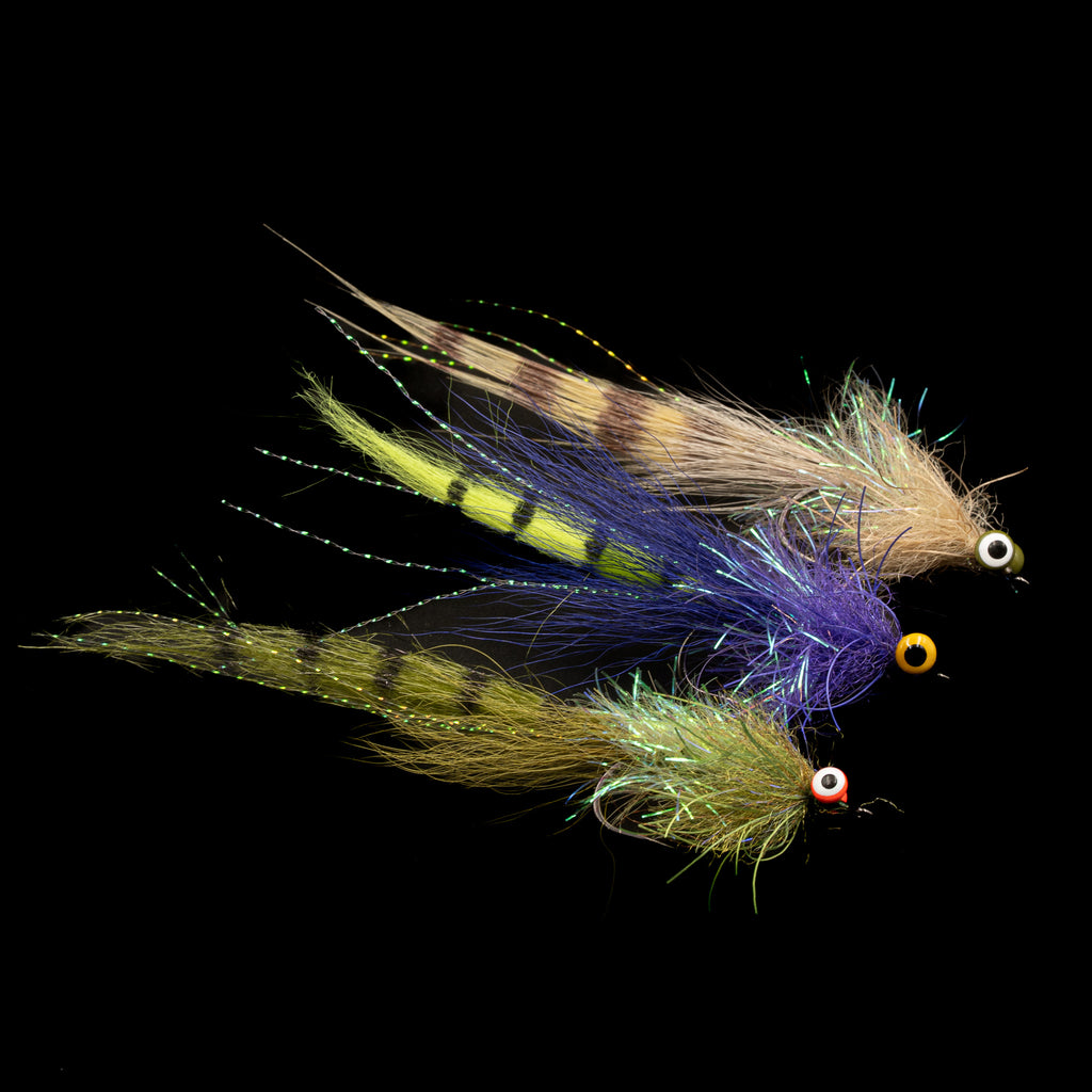 Designed by Louisiana native and longtime marsh angler A.J. Rosenbohm, the Flippin’ Shrimp is a proven shallow-water producer refined over years of sight-fishing the Gulf Coast. Built on a strong #2 saltwater hook with lead eyes, this pattern sinks quickly, stays level, and holds a clean shrimp profile even when presented tight to tailing fish. The long barred tail creates subtle breathing movement, while the translucent body adds just enough shimmer to stand out without blowing up the natural silhouette. Every element is tied to perform in the marsh: a weight-forward design that flips over cleanly, materials that won’t foul, and durability that handles grass edges, shell, and redfish crushers without falling apart. Whether you’re sliding it into a pothole for speckled trout, dropping it in front of a crawling red, or creeping it along mud for drum, this pattern stays in the zone and triggers the eats that matter. Flippin’ Shrimp has been a staple in A.J.’s Louisiana playbook for years because it simply works across seasons, water clarities, and forage cycles.