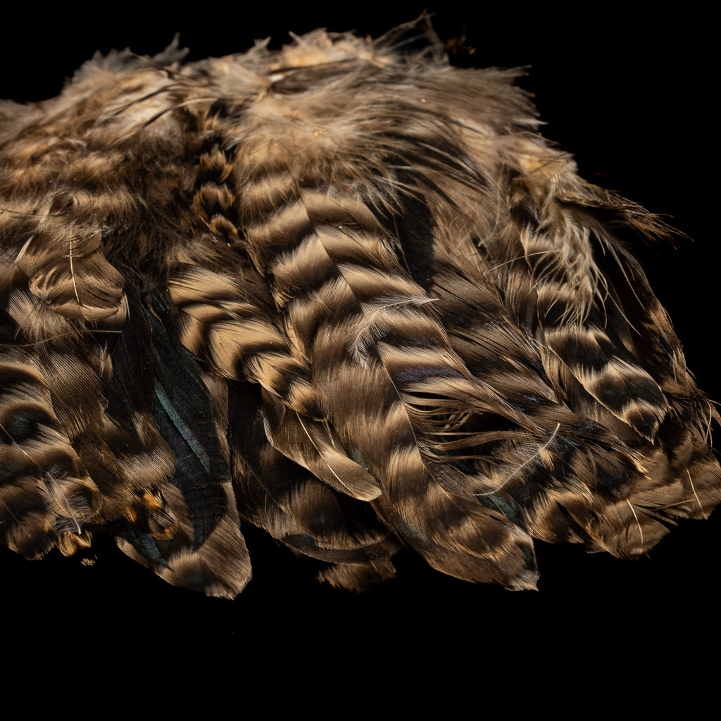 Each feather features distinctive black barring, giving your flies a natural contrast and a bold, fish-attracting profile. While primarily used for collars, many feathers in this selection are also perfect for palmering, making them versatile for tying everything from spey flies to large saltwater baitfish imitations.