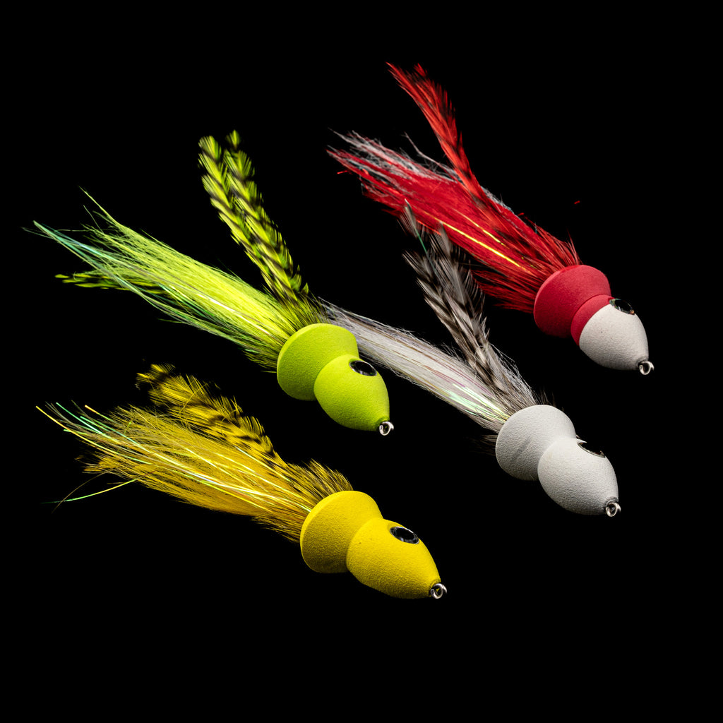 The oversized diving head is cut from high-density foam, giving the fly its signature push-and-plunge action. Strip it fast and it digs with a deep wobble. Strip it slow and it slides just under the surface with a wide, baitfish roll. The long, flowing tail material breathes on every pause, making the fly look alive even when it’s sitting still.