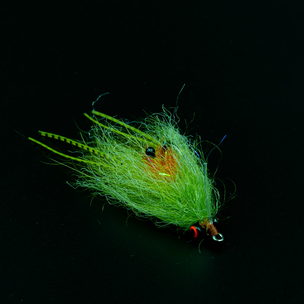 Built for backwater brawls and marshy mayhem, the Swamp Bug brings the heat in all the right places. Tied on a size #2 saltwater hook and loaded with small lead eyes for the perfect sink rate, this buggy beauty is designed to irritate anything that feeds low and slow.