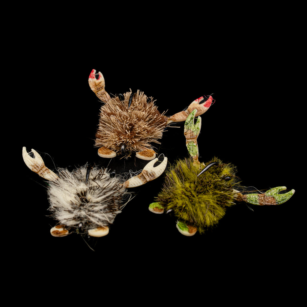 Designed by Pro Staff tyer Casey of FlySmithFlies, the Teddy Bear Crab is a premium crustacean pattern built for sight-fishing the most selective shallow-water species. The fly gets its name from the unique body material: a hand-blended mix of deer hair and craft fur that creates a soft, dense, natural texture — similar to the subtle depth and matte finish of a real crab’s shell. Nothing about it looks synthetic or over-styled; it looks alive, familiar, and completely believable to a feeding fish.