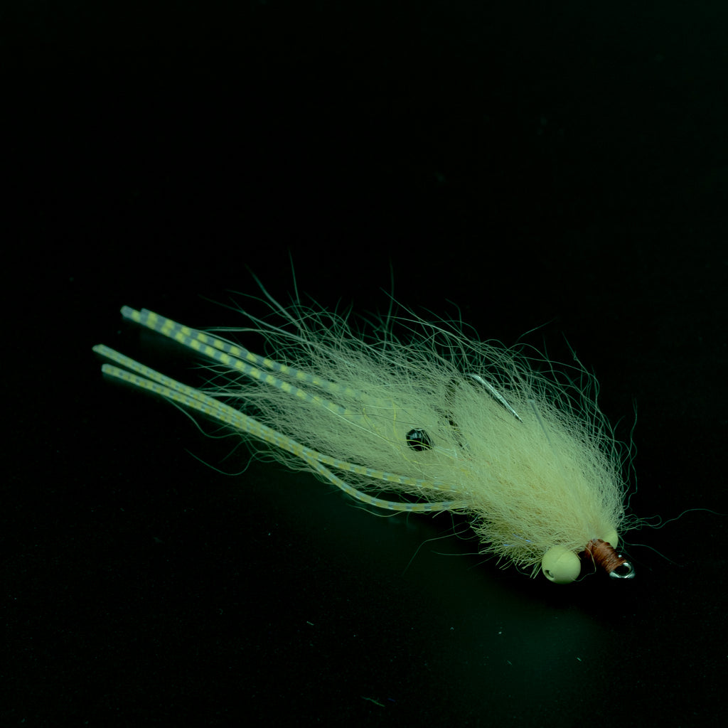 Available in Cream and Olive, each fly is hand-tied with just enough flash and rubber legs to spark curiosity without overdoing it. It’s the pattern you reach for when the water’s shallow, the fish are spooky, and every cast has to count.